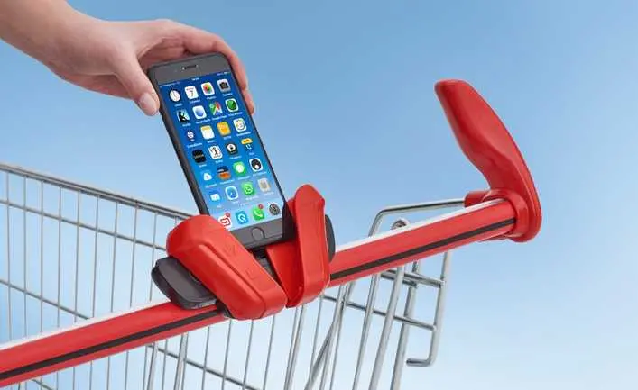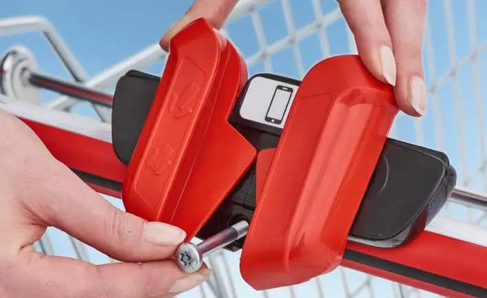 Das EASY ist eine rein mechanische, kostengünstige Lösung und passt für unterschiedlich große Smartphones – mit oder ohne Schutzhülle. Die Smartphone-Halterung lässt sich auf nahezu alle Einkaufswagengriffe auch nachträglich montieren und gibt dem Markt ein modernes, innovatives Image.